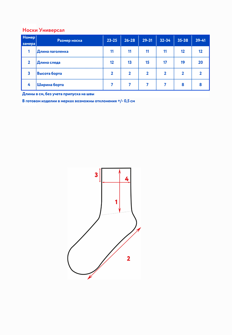 Таблица размеров
