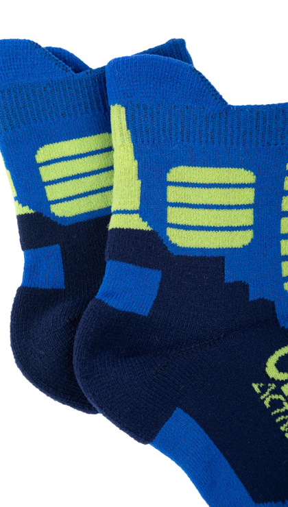 Детские универсальные носки изготовлены из полиамидных нитей (94% полиамид, 6% эластан), которые эффективно отводят влагу и пот, при этом удерживая тепло. Специальная компрессионная вязка в области стопы и щиколотки способствует улучшению кровотока, что также усиливает согревающий эффект. Анатомическая форма носка и эластан в составе обеспечивают идеальную посадку по ноге и усиливают компрессионный эффект.