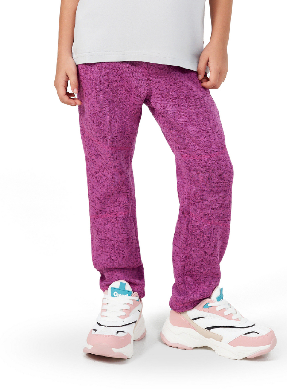 ● Вязаная фактура ткани ● Пояс на резинке, с дополнительной регулируемой утяжкой ● Низ брюк прямой