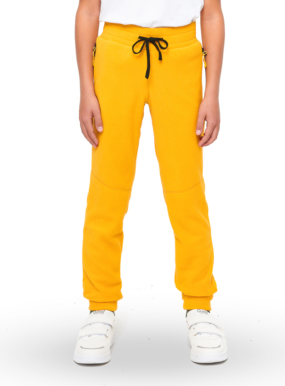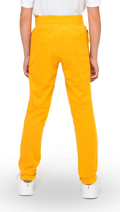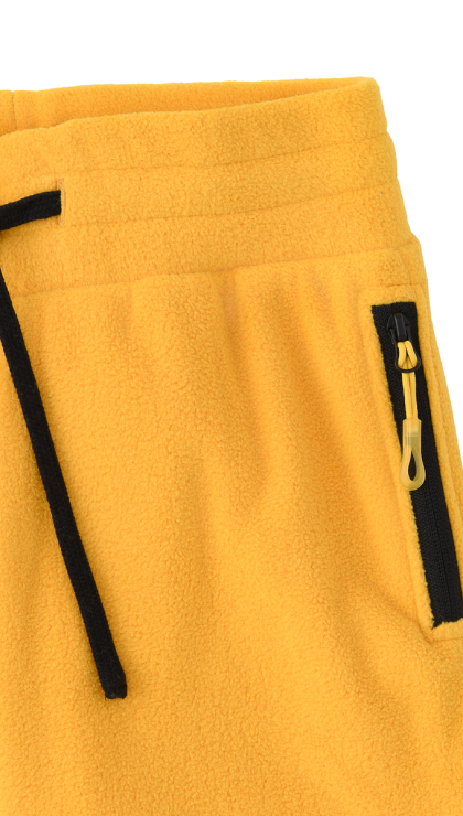 ● Мягкий и приятный на ощупь флис ● Карманы на молнии ● Пояс с широкой резинкой внутри ● Дополнительная утяжка по талии с помощью шнурка ● Низ брюк на резинке
