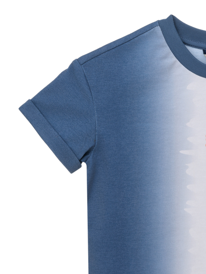 Хочется добавить красок, выйти на улицу и придумать что-нибудь необычное. Почему бы и нет? Футболка Фромс выполнена из смесовой ткани с хлопком и полиэстером и подходит для активного дня. Горловина и прямой низ сохраняют форму даже при активной носке. Цветовое решение в стиле тай-дай и манжеты с отворотом по низу рукавов добавляют образу актуальные визуальные акценты.