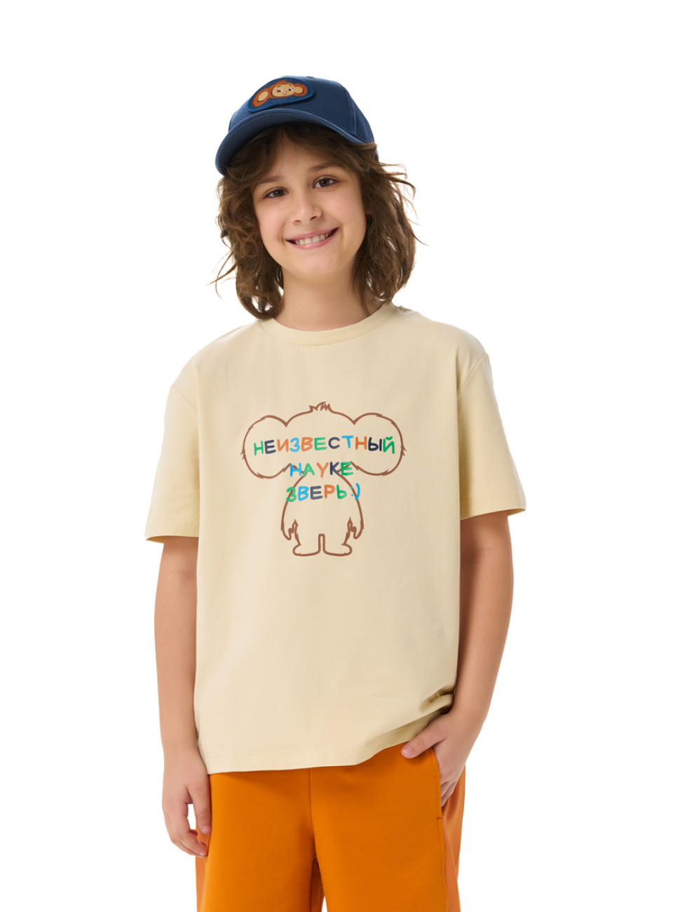 Футболка для мальчиков Алик создана, чтобы стать базовой вещью в гардеробе. Оригинальный принт с легендарным персонажем любимых мультфильмов Чебурашкой привлекает внимание и поднимает настроение. Футболка универсальна и легко сочетается с шортами, джинсами или спортивными брюками.