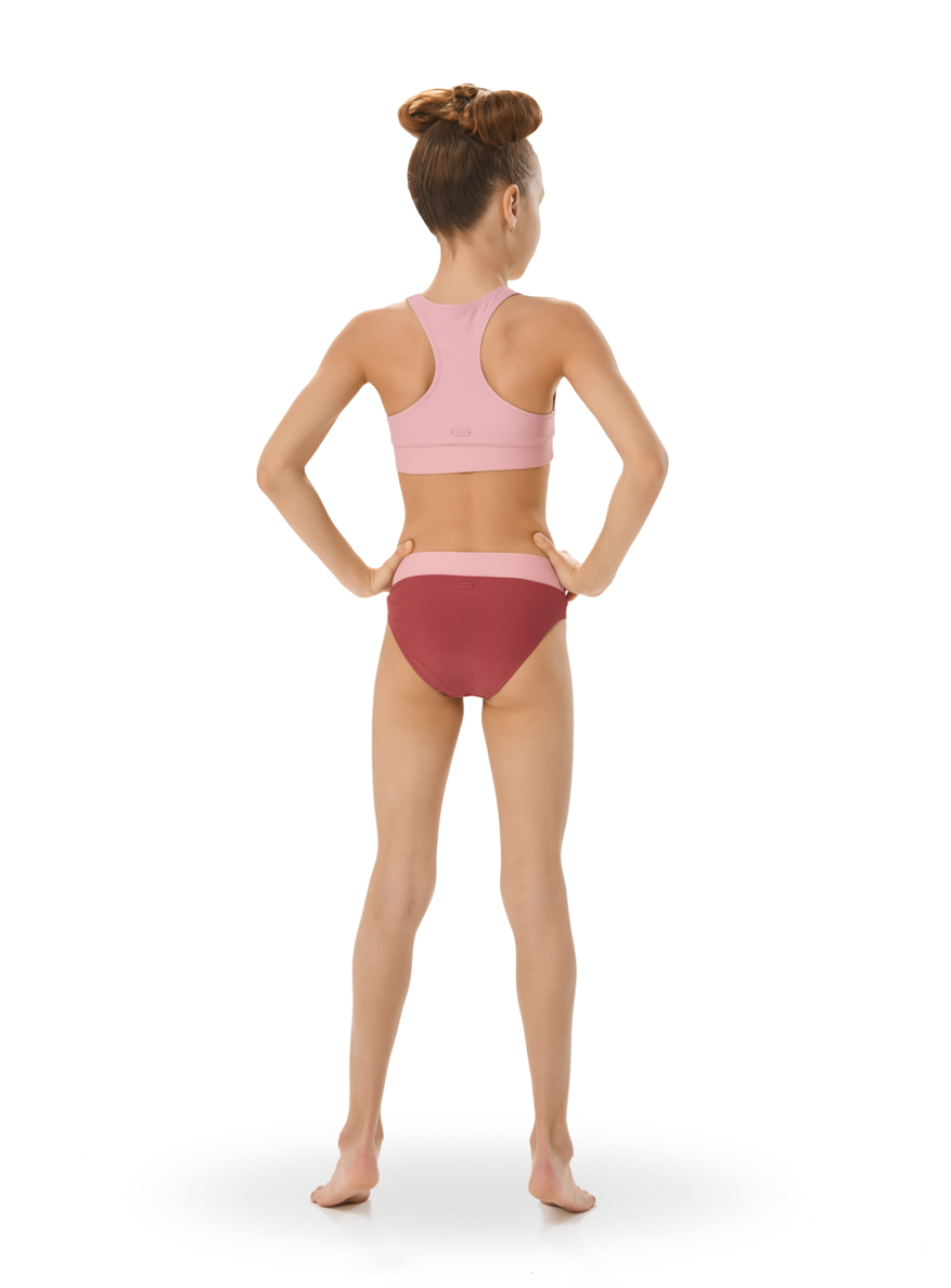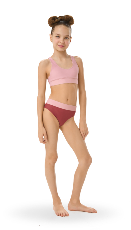 Купальный костюм для девочек Сайла включает топ и бикини. Стильный лаконичный комплект подходит для активного отдыха у воды и занятий в бассейне.