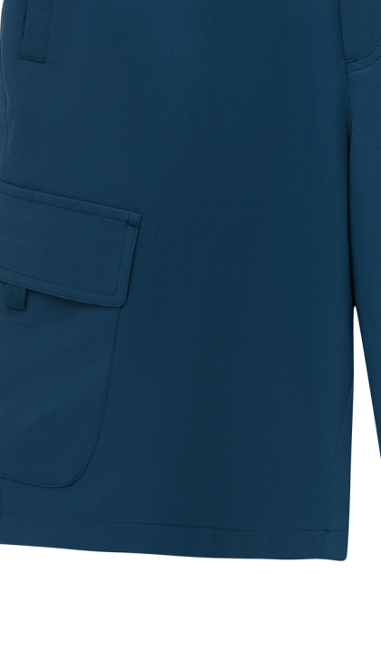 Материал с добавлением эластана (92% полиэстер, 8% эластан) гарантирует прочность, качественную воздухопроницаемость и высокую эластичность. Водоотталкивающая пропитка DWR защищает ткань от влаги и загрязнений, что делает шорты идеальными для любых погодных условий.