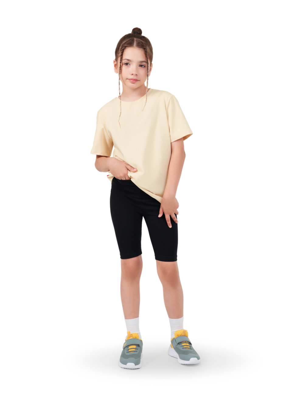 Шорты для девочек Лиора имеют облегающий силуэт, который подчеркивает фигуру и не сковывает движений, что необходимо для занятий спортом и активного отдыха. Пояс на резинке обеспечивает надежную фиксацию и комфортное прилегание, позволяя шортам оставаться на месте даже во время самых интенсивных занятий.