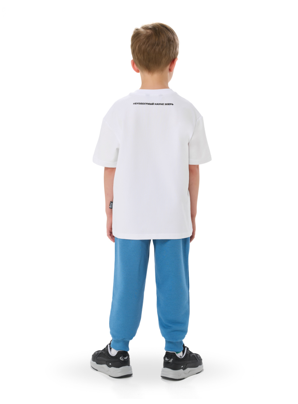 Футболка для мальчиков и девочек выполнена из ткани, содержащей 92% хлопка и 8% эластана. Такой состав обеспечивает отличную посадку, мягкость и эластичность, позволяя ребенку свободно двигаться во время игр и занятий.