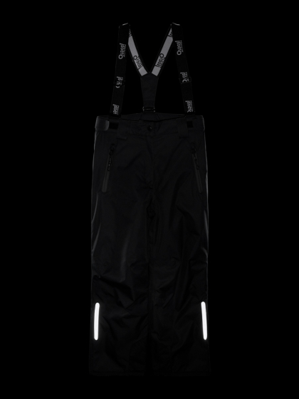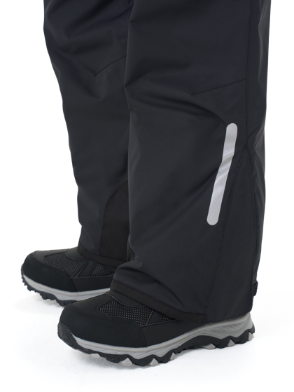 ● Проклеенные швы ● Карманы с прорезиненными молниями ● Застежка - молния, с кнопкой и липучкой ● Регулируемая утяжка по талии ● Шлёвки под ремень ● Съемные лямки, регулируемые по длине ● Снего-ветрозащитные муфты с антискользящей резинкой ● Низ брюк прямой, с клапаном на липучке для регулировки ширины ● Усиления тканью Oxford в местах особого износа ● Световозвращающие элементы