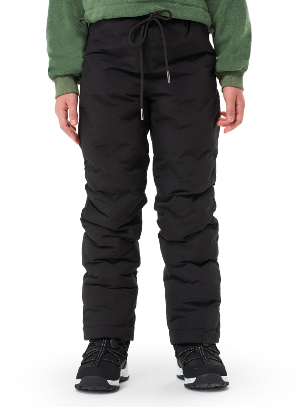 ● Пуховые брюки с термостежкой ● Пояс на резинке ● Дополнительная утяжка по талии ● Без гульфика