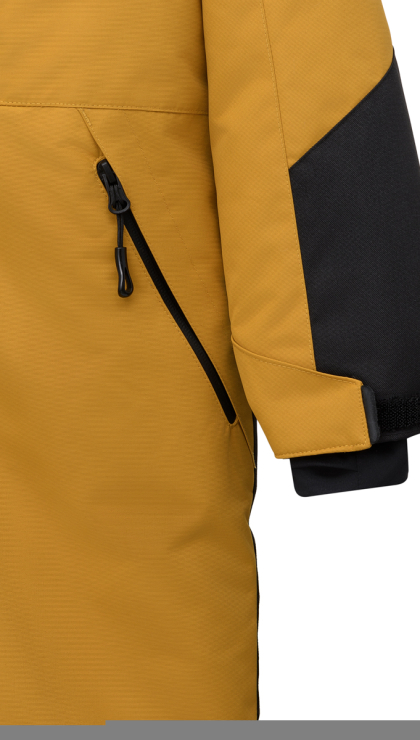 ● Двойная ветрозащитная планка по всей длине молнии с защитой подбородка ● Застежка - молния, планка на липучках ● Нагрудный карман на молнии с листочкой ● Теплые боковые карманы с прорезиненными молниями ● Регулируемая утяжка по талии ● Рукав втачной ● Низ рукава на резинке, с дополнительной регулировкой на пату с липучкой ● Внутренние эластичные манжеты с отверствием для большого пальца ● Капюшон съемный, с резинкой по бокам ● Воротник-стойка с утеплителем и мягкой флисовой подкладкой ● Снего-ветрозащитные муфты с антискользящей резинкой ● Низ брюк с разрезом на молнии по боковым швам ● Усиления тканью Oxford в местах особого износа ● Крепления для лямок полусброса (лямки продаются отдельно) ● Световозвращающие элементы