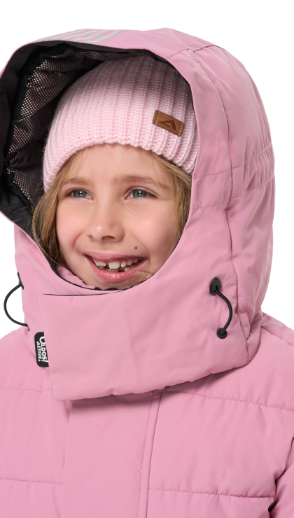 ● Регулируемая утяжка по краю капюшона, в верхней части дополнительная регулировка на хлястик