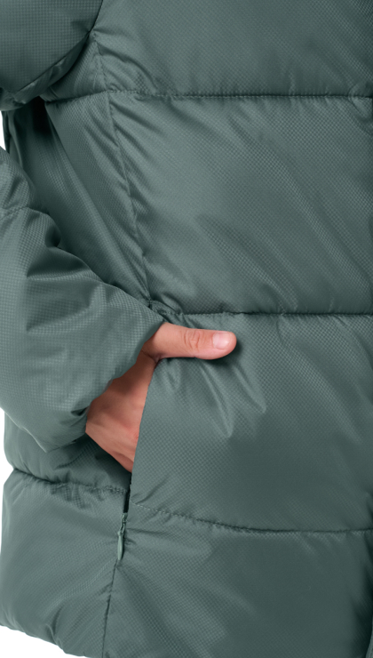 Лёгкая и прочная куртка с утеплителем из искусственного лебяжьего пуха согреет даже в сильные морозы до -30°C. Мембранная ткань 10 000/10 000 надёжно защищает от ветра и влаги, а водоотталкивающая пропитка Teflon облегчает уход за изделием. Продуманный крой прямого силуэта обеспечивает свободу движений, а регулируемые элементы помогут создать идеальную посадку. Несъёмный капюшон с утяжкой и удобными застежками-ушками на липучках надёжно защитит от ветра.