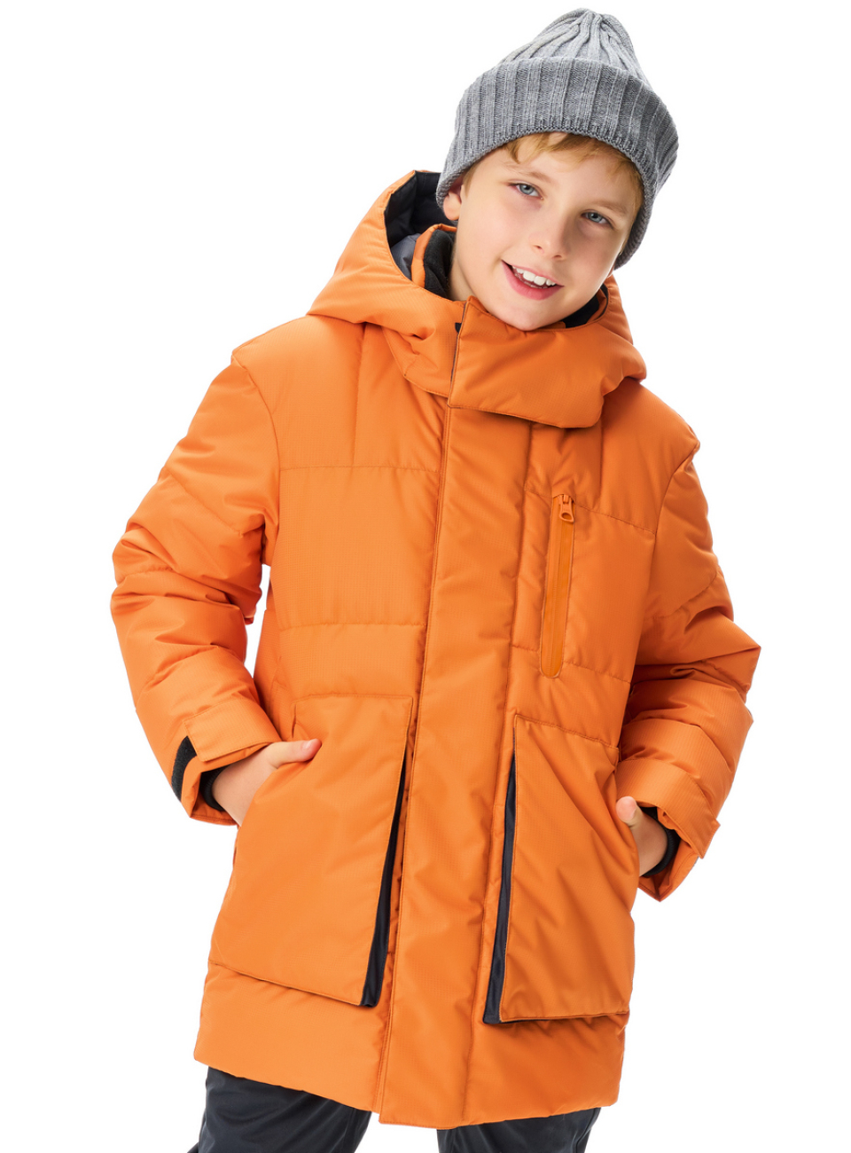 ● Прямой силуэт ● Капюшон съемный, с регулируемой утяжкой по лицевому краю ● Воротник-стойка с утеплителем ● Двойная ветрозащитная планка по всей длине молнии с защитой подбородка ● Застежка - двухзамковая молния, планка на липучках ● Нагрудный теплый карман с прорезиненной молнией ● Боковые теплые накладные объемные карманы на молнии с листочкой ● Рукав втачной ● Низ рукава прямой, с липучкой ● Трикотажные саморегулирующиеся манжеты ● Регулируемая утяжка по низу куртки ● Световозвращающие элементы