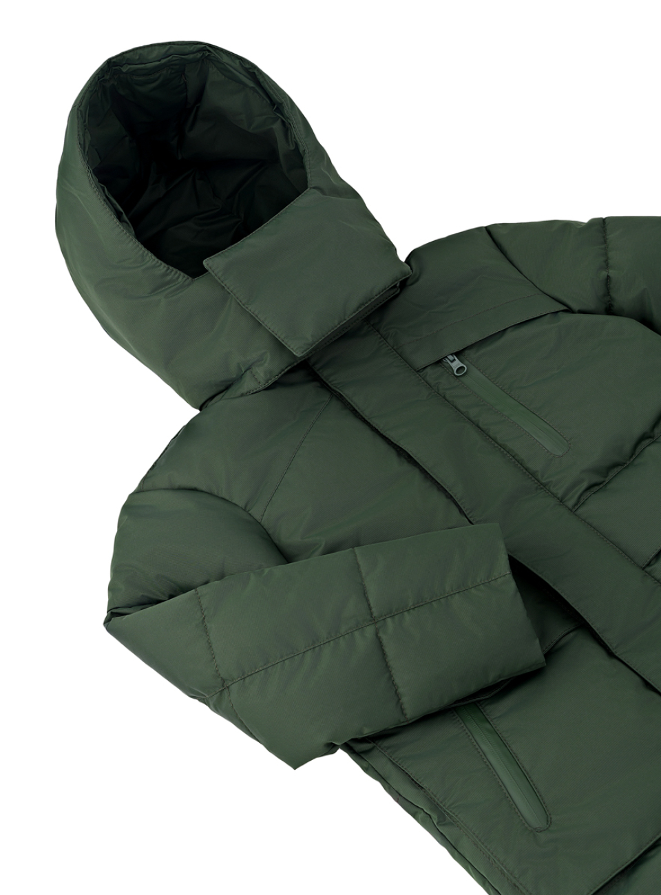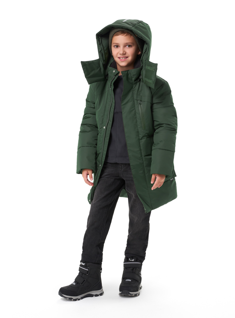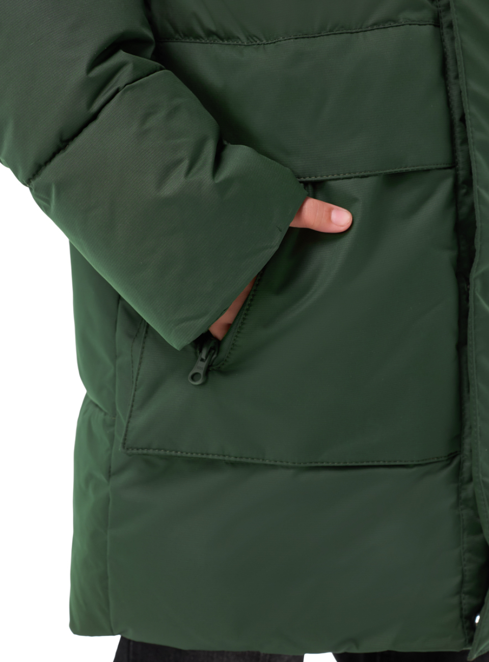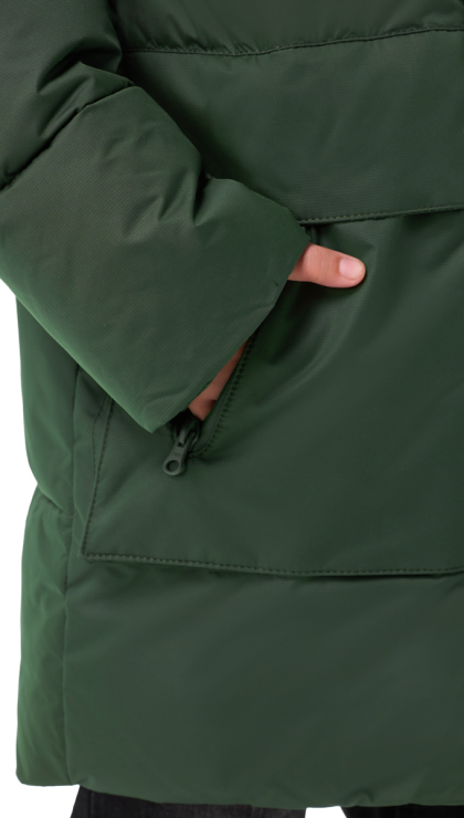 ● Боковые теплые накладные объемные карманы с прорезиненными молниями и клапаном