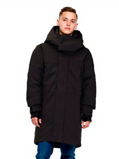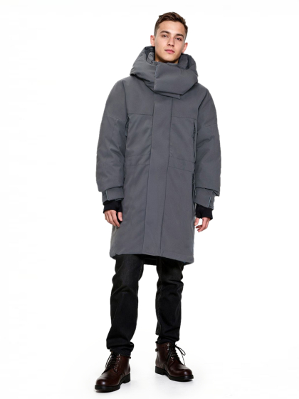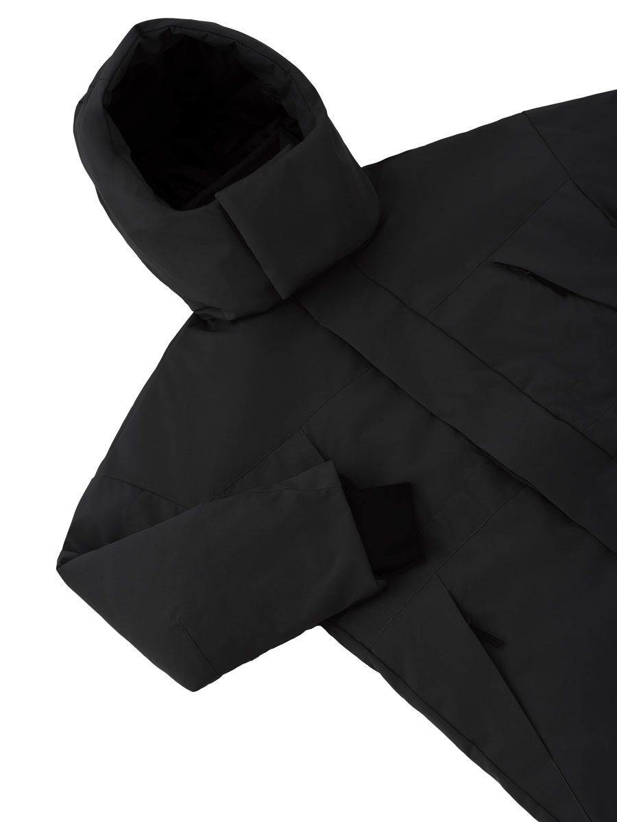 Съемный капюшон с регулируемой утяжкой и застежкой на магнитах, воротник-стойка с утеплителем и двойная ветрозащитная планка по всей длине молнии не пропускают ветер и влагу, сохраняя тепло и комфорт даже в самые суровые зимние дни.