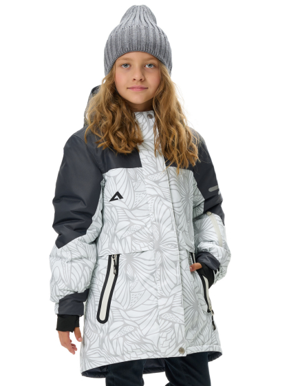 Непромокаемая зимняя куртка для девочек застегивается на молнию с ветрозащитной планкой на кнопках и липучке и внутренней планкой с мягкой защитой подбородка. Теплые боковые карманы закрываются на прорезиненную молнию. Предусмотрены крепления для лямок полусброса (лямки продаются отдельно)