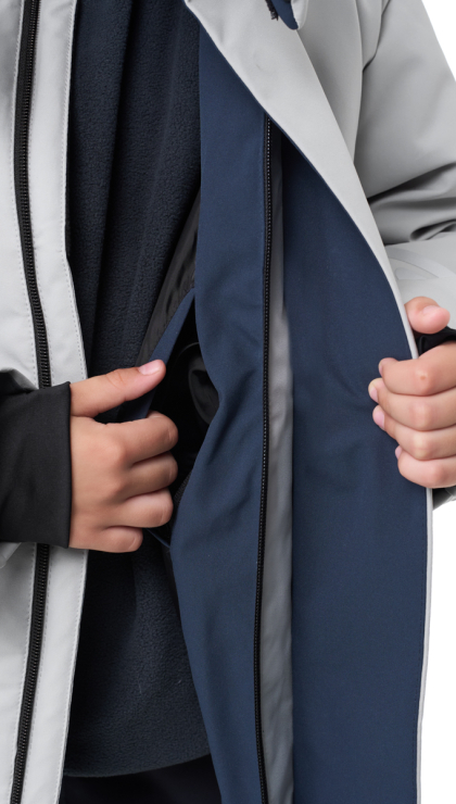 ● Прямой силуэт ● Двойная ветрозащитная планка по всей длине молнии с защитой подбородка ● Застежка - двухзамковая молния, планка на магнитах ● Теплые боковые карманы на молнии с листочкой ● Регулируемая утяжка по талии ● Рукав втачной ● Низ рукавов прямой, с липучкой ● Внутренние эластичные манжеты с отверствием для большого пальца ● Капюшон съемный, на кнопках ● Регулируемая утяжка по краю капюшона, в верхней части дополнительная регулировка на хлястик ● Воротник-стойка с утеплителем ● Внутренний карман на молнии ● Световозвращающие элементы