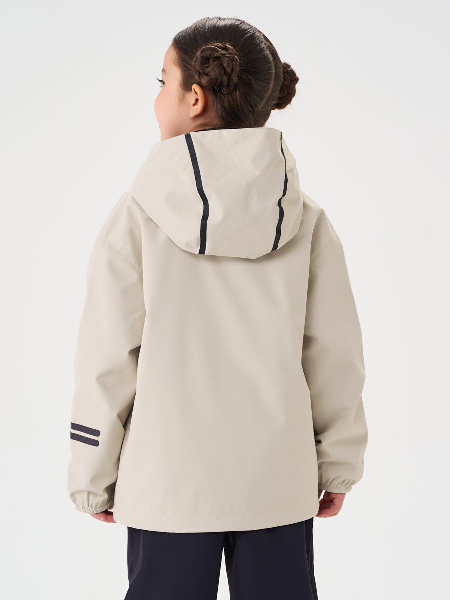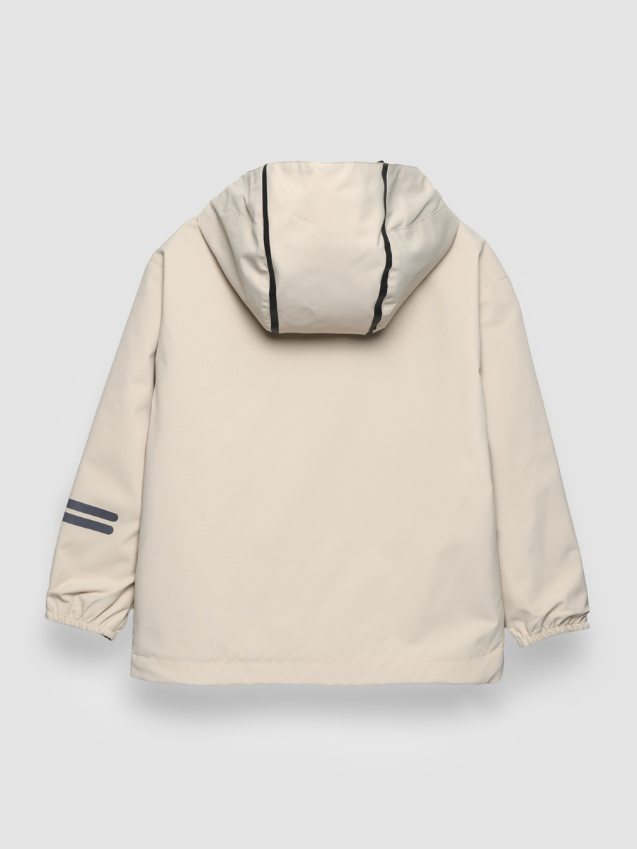 ● Капюшон несъемный, с регулируемой утяжкой по краю, декоративный термотрансфер по швам