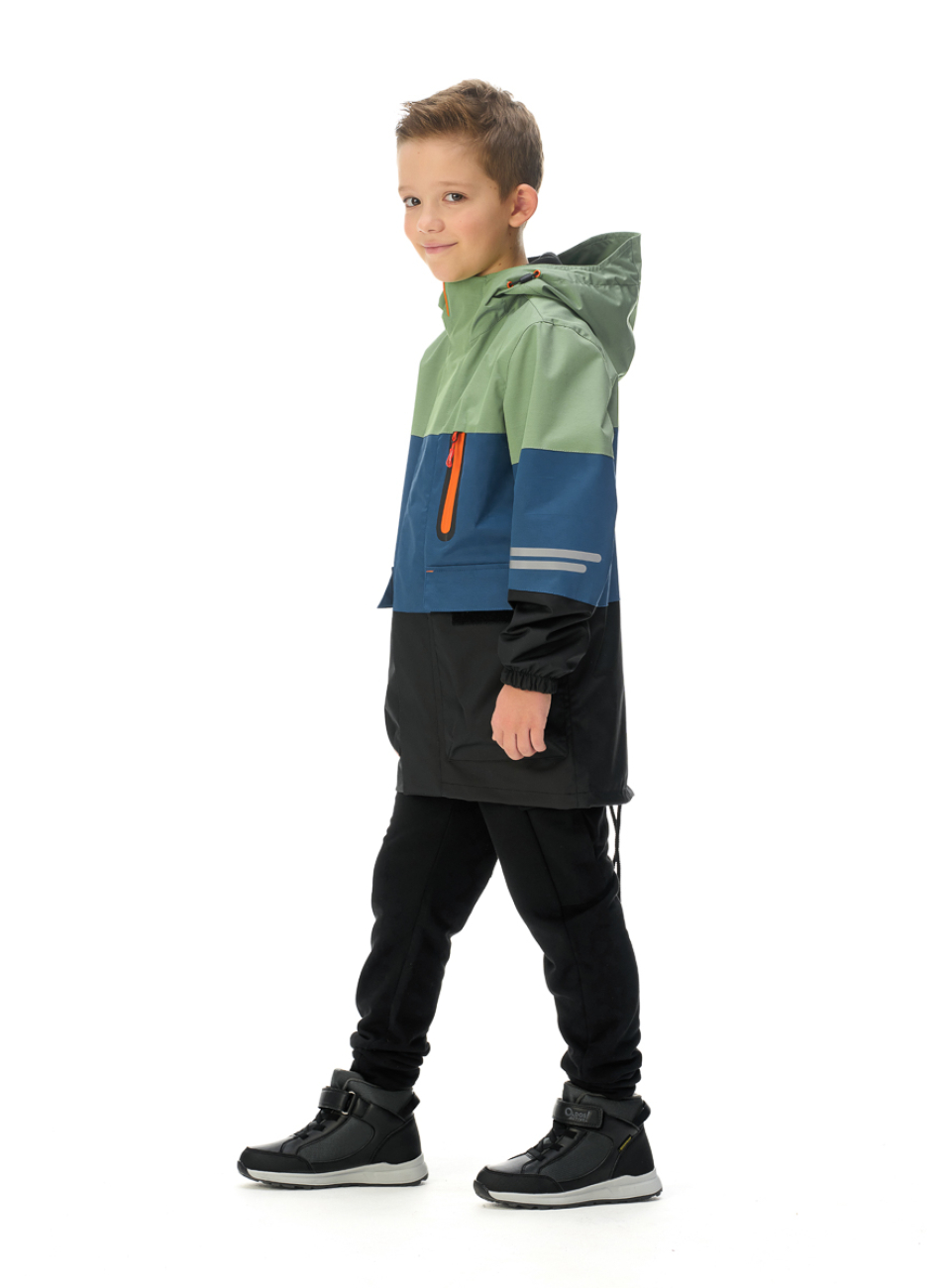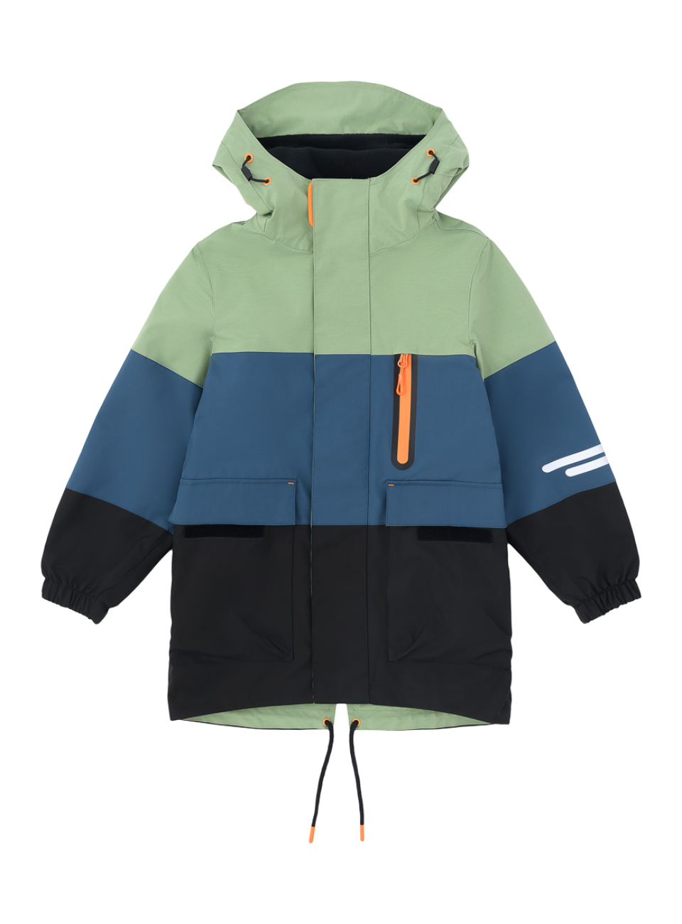 ● Капюшон несъемный, с регулируемой утяжкой по лицевому краю и козырьком