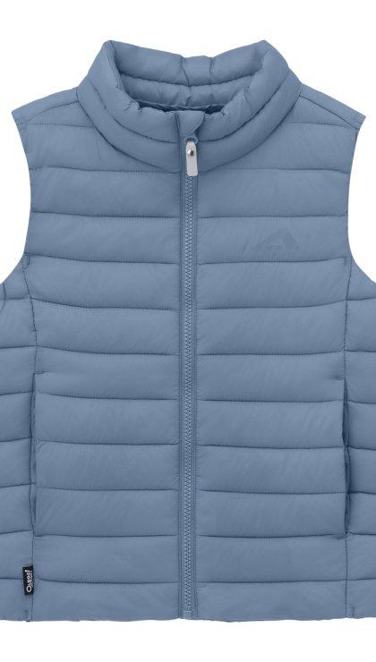 Выполненный из прочного нейлона с водоотталкивающим покрытием PA 400*, жилет утепленный без капюшона детский защищает от легкого дождя и ветра. Синтепух плотностью 195 г/м² сохраняет тепло без утяжеления, а подкладка из нейлона повышает комфорт при носке.